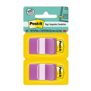 Post-it Flags, 1in x 1 -11/16in, Purple, 50 Flags Per Pad, Pack Of 2 Pads