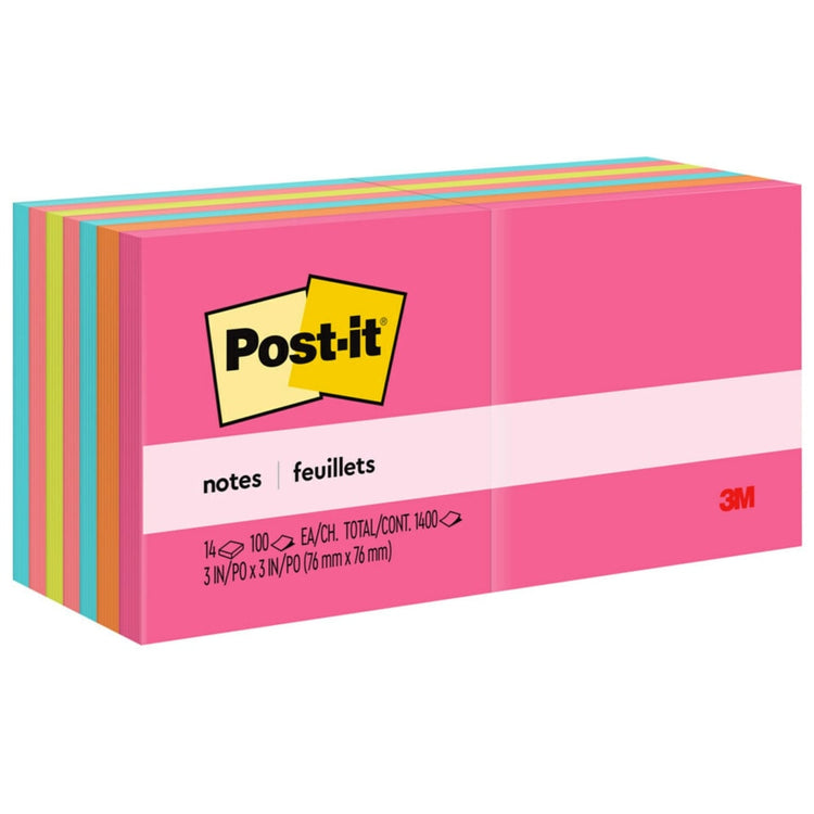 Post-it Notes, 3 in x 3 in, 14 Pads, 100 Sheets/Pad, Clean Removal, Poptimistic Collection