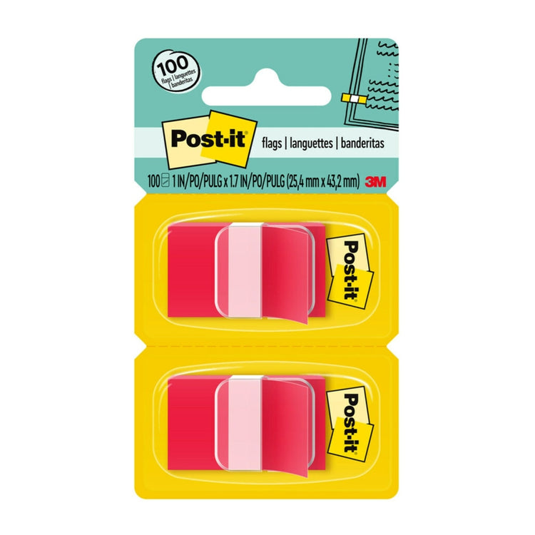 Post-it Notes Flags, 1in x 1-7/10in, Red, 50 Flags Per Pad, Pack Of 2 Pads