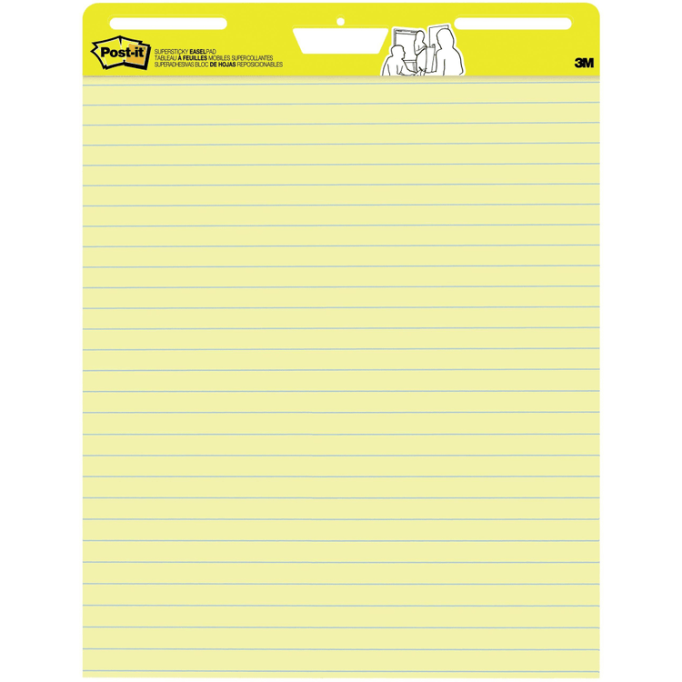 Post-it Super Sticky Easel Pad, 25in x 30in, Yellow With Blue Lines, Pad Of 30 Sheets