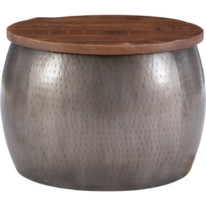 Blending textures and hues to create a lovely artistic effect, the Powell Angus Drum Side Table is crafted with a hammered metal base and a mango wood top. The top can also be lifted to uncover the hidden storage compartment that is ideal for holding blankets, toys, pillows and more. You'll love the different styles of the side table that fits in well with contemporary, industrial, modern and rustic décor styles.