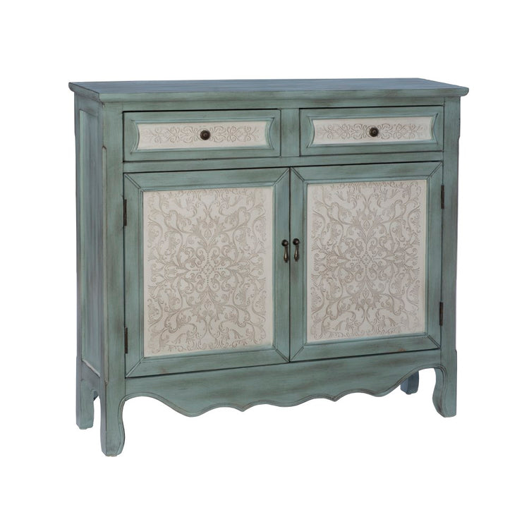 Powell Balfour 2-Door Console Table, 36inH x 40-1/4inW x 11inD, Blue/White