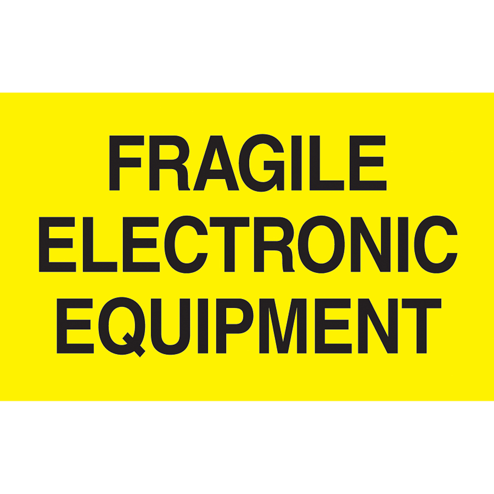 Preprinted Special Handling Labels, DL2441, "Fragile Electronic Equipment", 5in x 3in, Bright Yellow, Roll Of 500