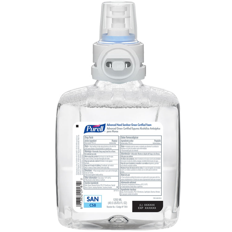 Purell Advanced Green Certified Foam Hand Sanitizer Refill For CS8 Touch-Free Hand Sanitizer Dispensers, Unscented, 40.6 Oz, Case Of 2 Refills