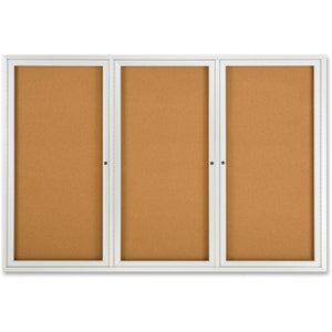 Quartet Fully Enclosed 3-Door Bulletin Board, 72in x 48in, Aluminum Frame With Silver Finish