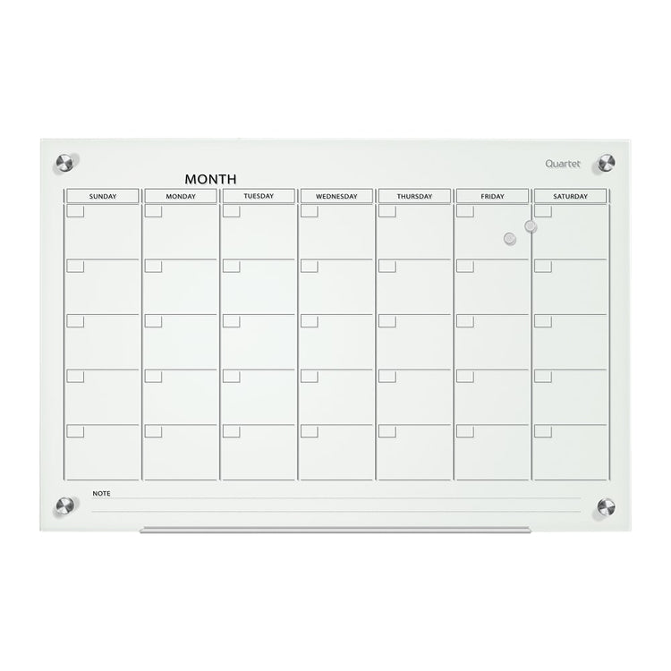 Quartet Infinity Glass Magnetic Unframed Monthly Calendar Whiteboard, 24in x 36in, White