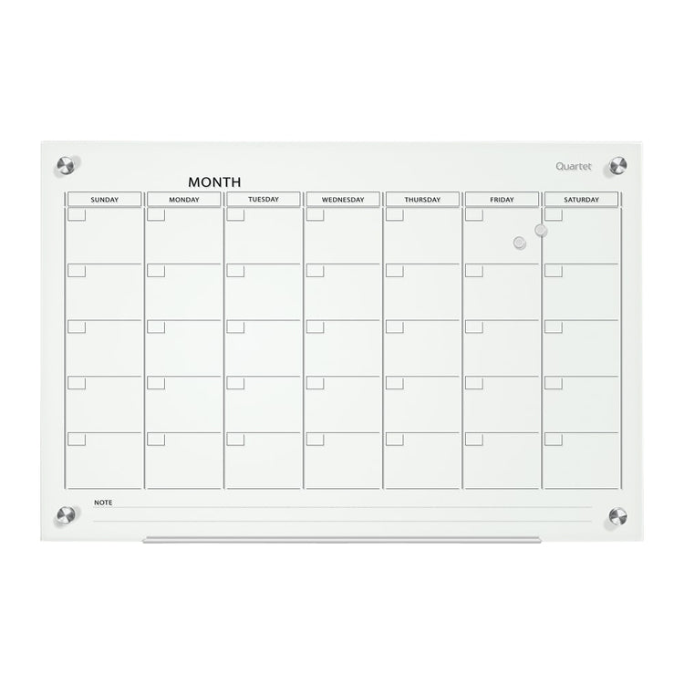 Quartet Infinity Unframed Magnetic Glass Calendar Whiteboard, 18in x 24in, White