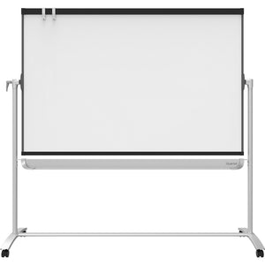 - Mobile presentation easel offers triple functionality: magnetic whiteboard, magnetic bulletin board and flipchart stand