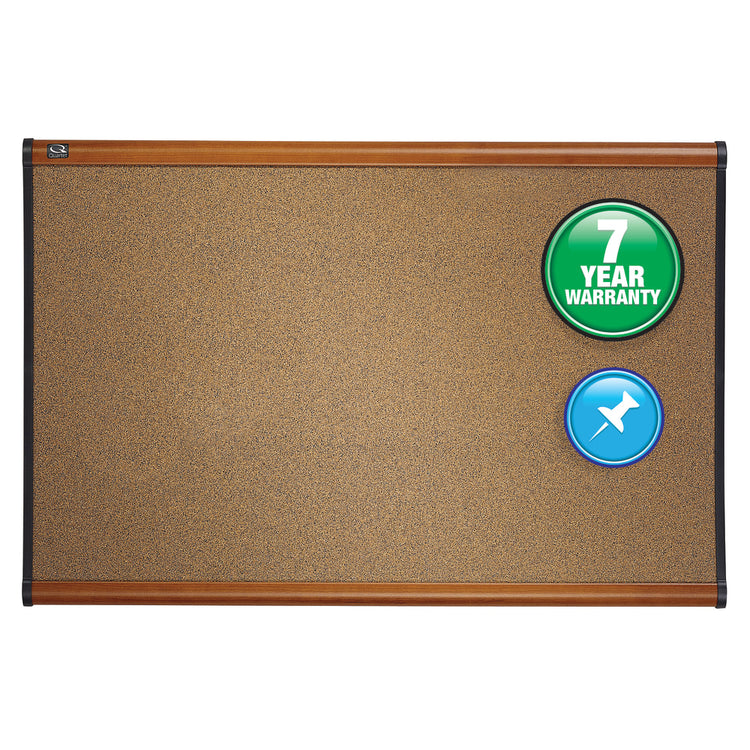 Quartet Prestige Cork Bulletin Board, 72in x 48in, Wood Frame With Cherry Finish