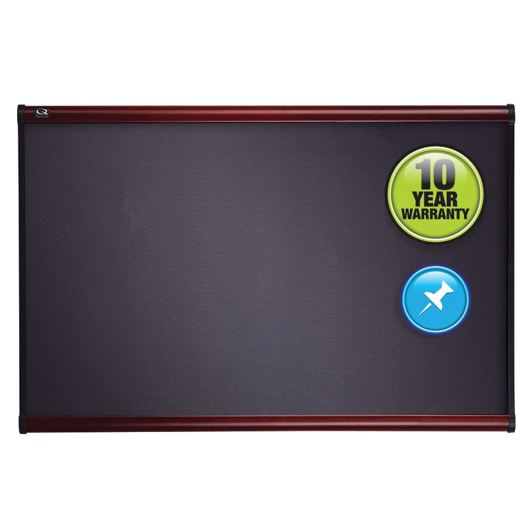 Quartet Prestige Gray Diamond Mesh Fabric Bulletin Board, 36in x 48in, Wood Frame With Mahogany Finish