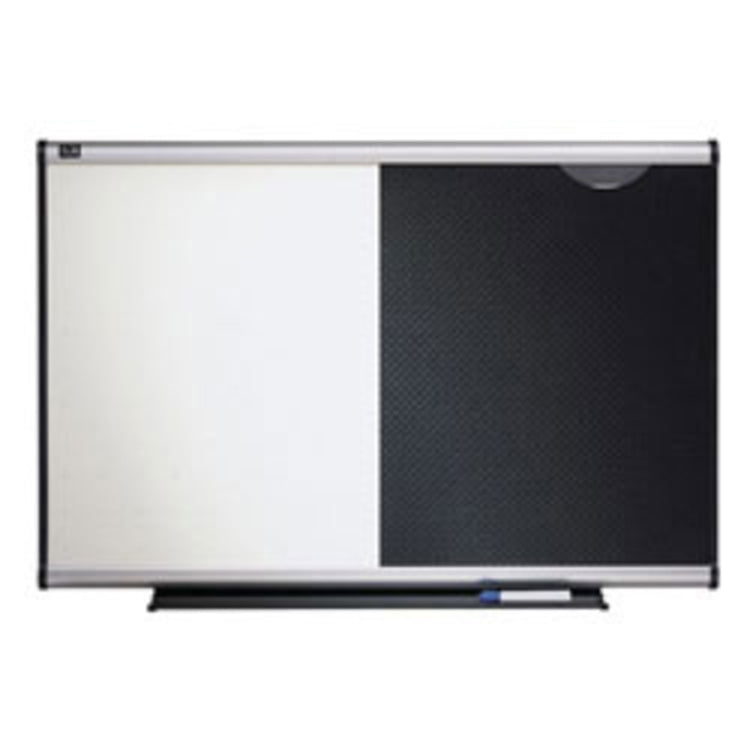 This board combines the durability of a Total Erase® whiteboard with the functionality of a black embossed foam bulletin board. Write or tack up items to keep track of your important messages with this stylish combo board.