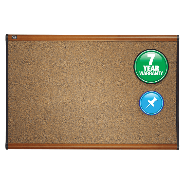 Quartet Select Prestige Color Cork Bulletin Board, 24in x 36in, Aluminum Frame With Light Cherry Finish