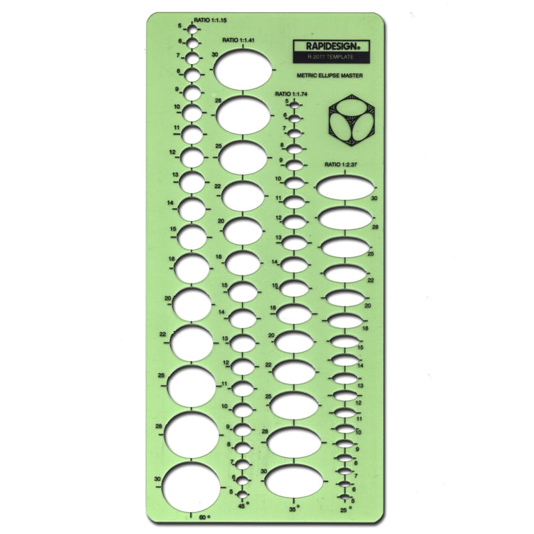 Rapidesign Ellipses Drafting Template, Metric Ellipse, 68 Ellipses