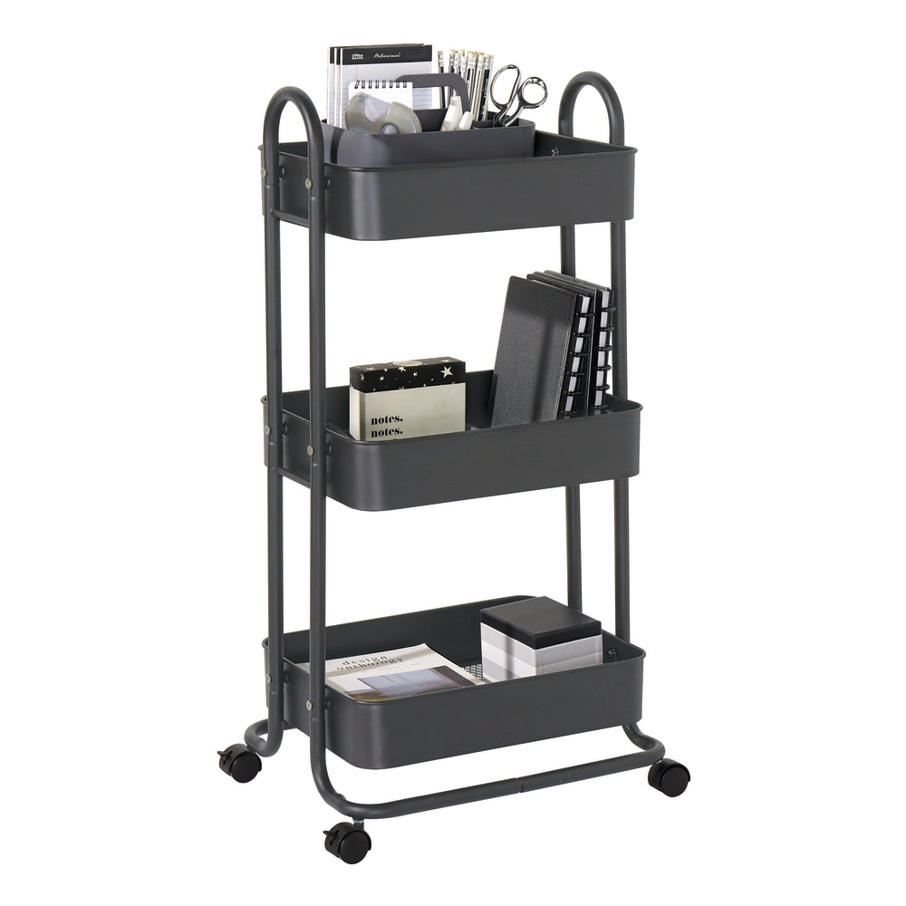 Realspace Mobile 3-Tier Storage Cart, 35-5/8inH x 17-15/16inW x 14-5/16inD, Gray