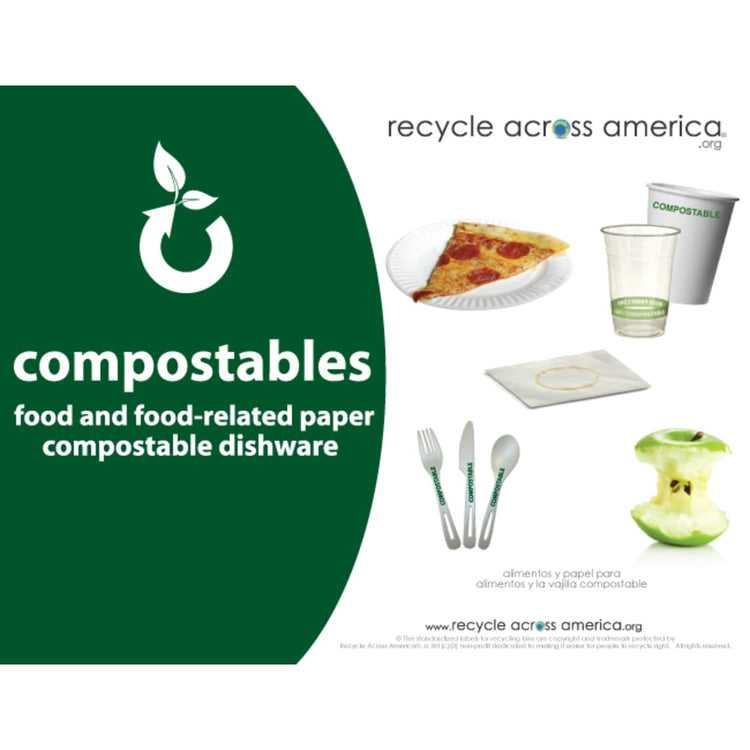 Recycle Across America Compostables Standardized Recycling Labels, COMPS-8511, 8 1/2in x 11in, Dark Green