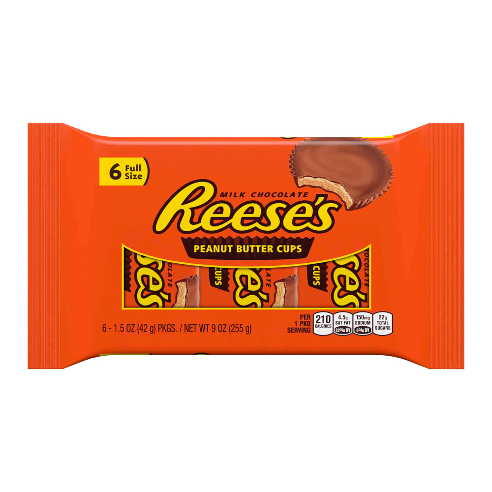 Reeses Peanut Butter Cups, 1.5 Oz, 6 Packs Per Bag, Pack Of 2 Bags