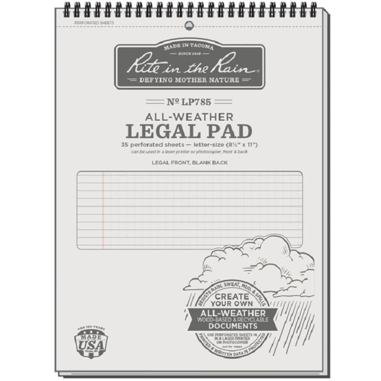 Rite in the Rain All-Weather Spiral Legal Pads, 8-1/2in x 11in, Universal Ruled, Gray, Pack Of 3 Pads