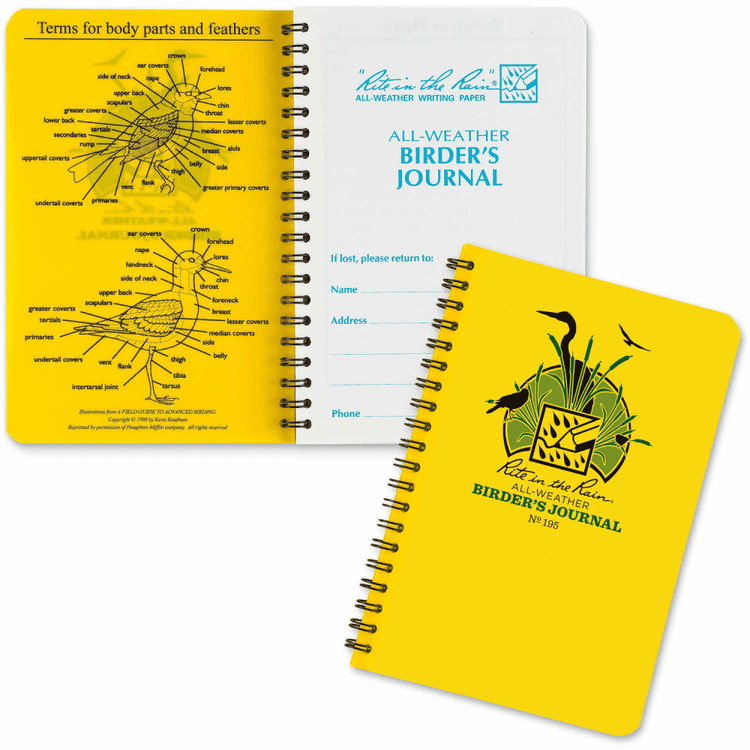Rite in the Rain All-Weather Spiral Notebooks, Birders Journal, 4-5/8in x 7in, 64 Pages (32 Sheets), Yellow, Pack Of 12 Notebooks