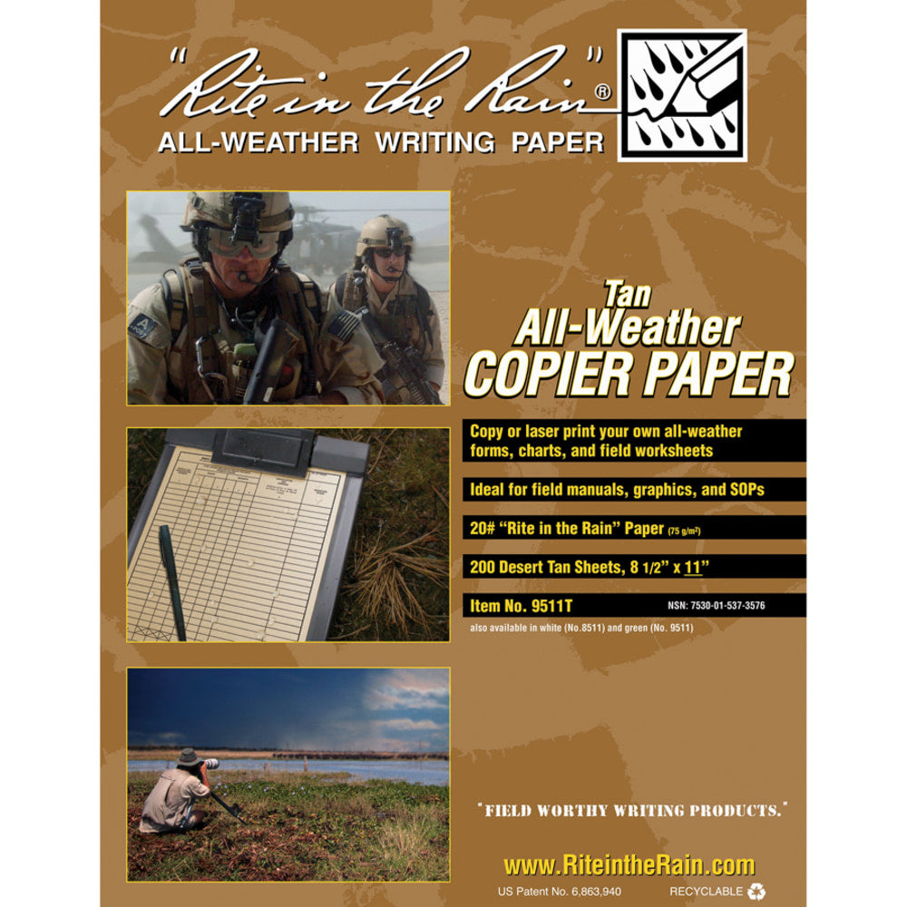 Rite in the Rain Tactical All-Weather Copy Paper, Tan, Letter (8.5in x 11in), 200 Sheets Per Pack, 20 Lb