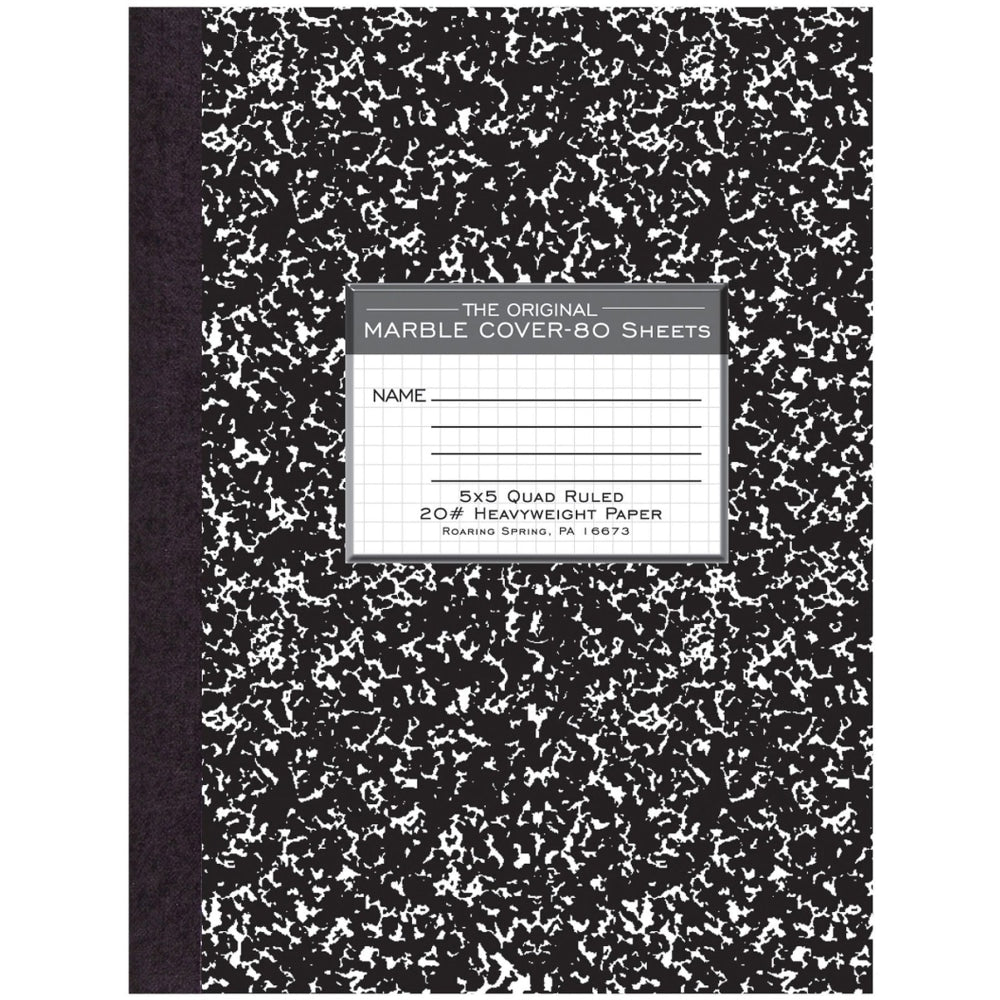 Roaring Spring Black Marble Comp 10.25inX8in 20# Graph - 80 Sheets - 160 Pages - Printed - Sewn/Tapebound - Both Side Ruling Surface - 20 lb Basis Weight - 10 1/4in x 7 7/8in - 0.5in x 7.9in10.3in