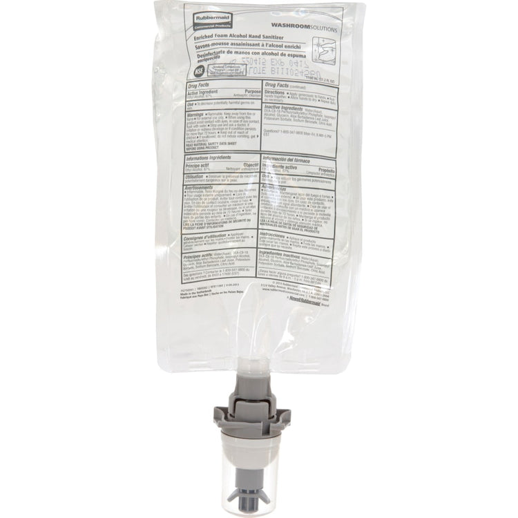Rubbermaid Commercial Hand Sanitizer Foam Refill - Fragrance-free Scent - 37.2 fl oz (1100 mL) - Kill Germs - Hand - White Clear - Dye-free, Hygienic - 4 / Carton