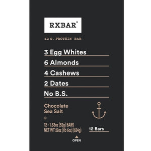 RXBAR Protein Bars, Chocolate Sea Salt, 1.8 Oz, Pack Of 12 Bars