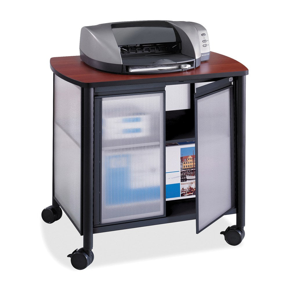 Safco Impromptu Machine Stand, Deluxe With Doors, 30 4/5inH x 34 4/5inW x 25 1/2inD, Cherry/Black