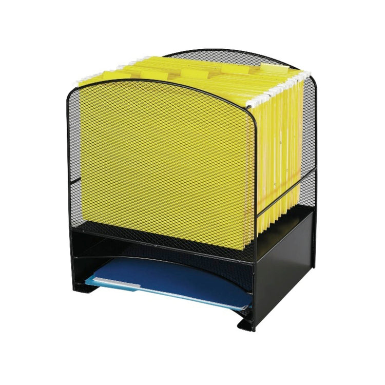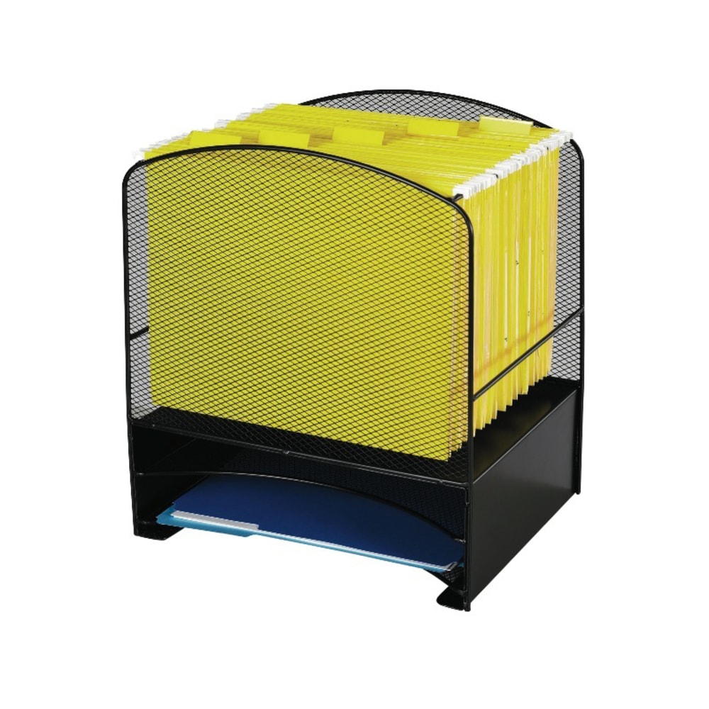 - 15 1/2"H x 13 1/2"W x 10 3/4"D-size mesh hanging file desk organizer holds plenty of documents. Black file desk organizer keeps items in order.