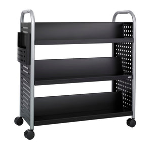 Safco Scoot Steel Book Cart, 6 Double-Sided Shelves, 41 1/2inH x 41 1/4inW x 17 1/4inD, Black