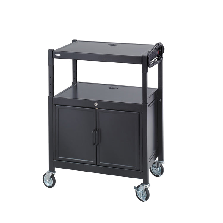 Safco Steel Adjustable AV Carts With Cabinet,Adjust.,42inH x 24inW x 18inD, Black