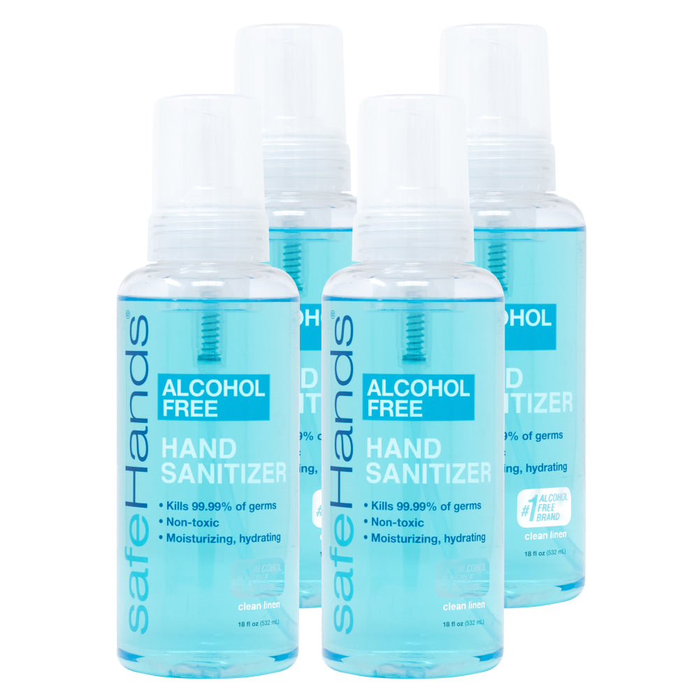 safeHands Alcohol-Free Hand Sanitizer, Clean Linen Scent, 18 Oz, Pack Of 4 Bottles