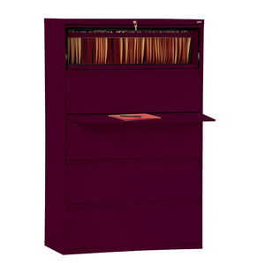 Sandusky 800 36inW x 19-1/4inD Lateral 5-Drawer File Cabinet, Burgundy
