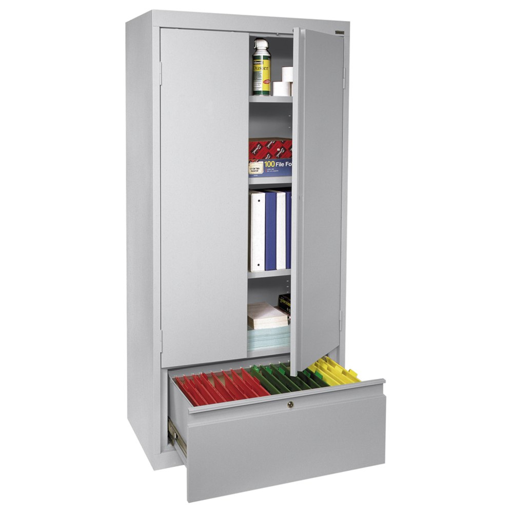 Sandusky Full-Height Steel Storage Cabinet With Drawer, 64inH x 30inW x 18inD, Dove Gray