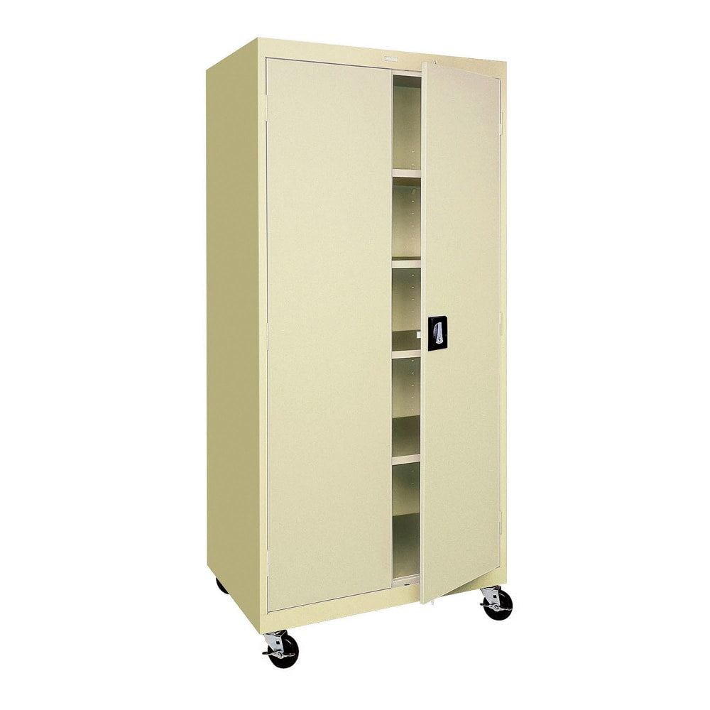 Sandusky Mobile Steel Storage Cabinet, 78inH x 36inW x 24inD, Putty