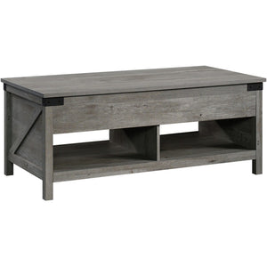 Upgrade your living room with the Sauder Bridge Acre Coffee Table. The lift top moves forward to create a desk or table surface for eating, reading or working. Hidden storage beneath the lift top is ideal for remotes, charging cables, magazines and other small items.