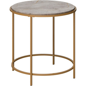 Sauder International Lux Round Side Table, 22-1/4inH x 22inW x 22inD, Taupe Gray Deco Stone/Satin Gold