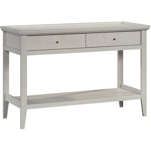 Round out your space with a Sauder Larkin Ledge Console Table With Storage. The top and drawer fronts feature a hexagon pattern for elegant style. The integrated shelf offers storage for large items like blankets and board games.