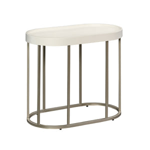 Sauder Manhattan Gate Oval Side Table, 21inH x 25inW x 14inD, Ivory/Nickel