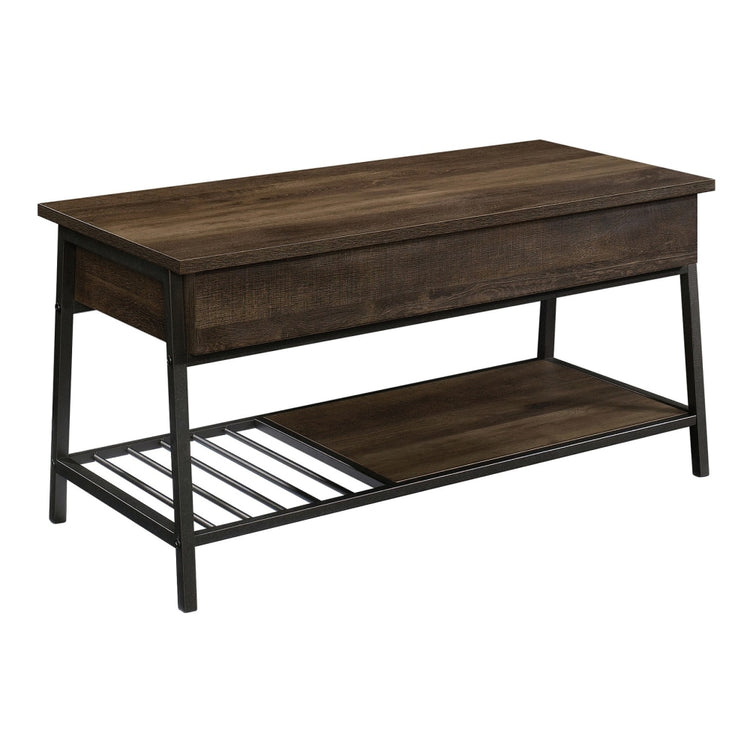 Create a living room where you can work on projects during the day and relax in the evenings with this Sauder North Avenue Lift-Top Coffee Table. The top surface lifts up and forward, revealing a hidden compartment you can use to stash blankets and magazines, and the lower shelf provides additional space for decorative pieces. The combination of metal and wood results in a stylishly modern aesthetic.
