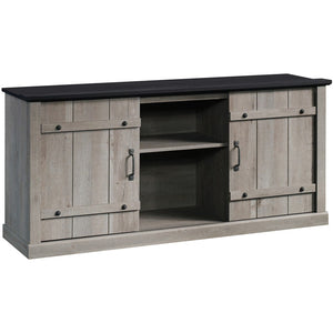 Cozy up for a movie marathon with the Sauder Select Farmhouse Entertainment Credenza. Open shelving lets you put decorative pieces on display, and sliding barn-style doors let you choose which shelves remain in view. Adjustable shelving provides flexible storage options for your electronics, board games and other living room essentials.