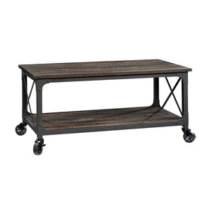 Sauder Steel River Coffee Table With Casters, 18-1/2inH x 43inW x 25-1/4inD, Black/Carbon Oak