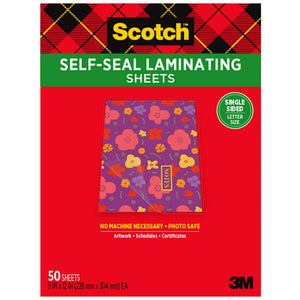 Scotch Self-Seal Laminating Sheets, 50 Laminating Sheets, Laminate Business Cards, Banners and Essays, Ideal Office or Back to School Supplies, Fits Letter Size (9 in. x 12 in.) Paper