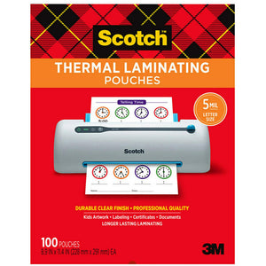 Scotch Thermal Laminating Pouches, 100 Laminating Sheets, 5 mil., Laminate Business Cards, Banners and Essays, Ideal Office or Back to School Supplies, Fits Letter Size (8.9 in x 11.4 in.) Paper