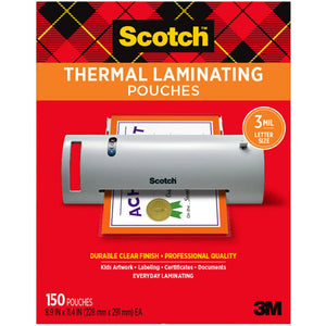 Scotch Thermal Laminating Pouches, 150 Laminating Sheets, 3 mil., Laminate Business Cards, Banners and Essays, Ideal Office or Back to School Supplies, Fits Letter Size (8.9 in x 11.4 in.) Paper