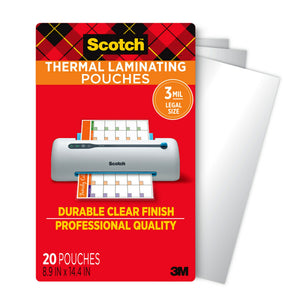 Scotch Thermal Laminating Pouches, 20 Laminating Sheets, 3 mil., Laminate Business Cards, Banners and Essays, Ideal Office or Back to School Supplies, Fits Legal Size (8.9 in. x 14.4 in.) Paper