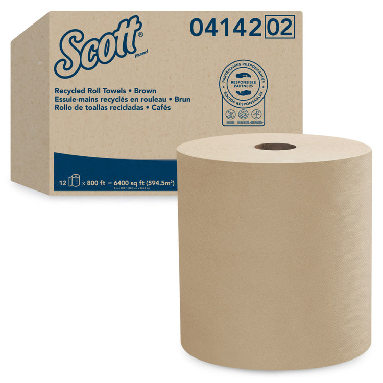 Scott Essential Hard Roll 1-Ply Paper Towels, 100% Recycled, Brown, 800ft Per Roll, Pack Of 12 Rolls