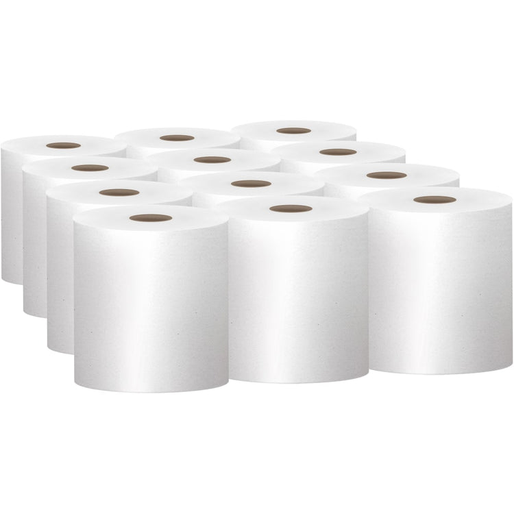 Scott Hard Roll Paper Towels with fast-drying Absorbency Pockets provide efficient, reliable hand-drying for your washroom or breakroom. High-capacity rolls have a 1.5" core and are compatible with most universal roll paper towel dispensers and a variety of Kimberly-Clark Professional dispensers (none included). Paper towels are designed to reduce maintenance time, runouts and complaints. Absorbent, recycled paper towels are perfect for efficient, general-purpose cleaning and drying so your employees and guests will use less and waste less.