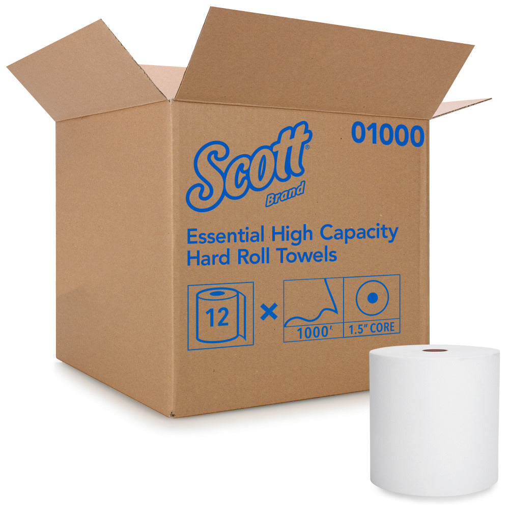 Scott High-Capacity 1-Ply Hardwound Paper Towels, 1000ft Per Roll, Pack Of 12 Rolls