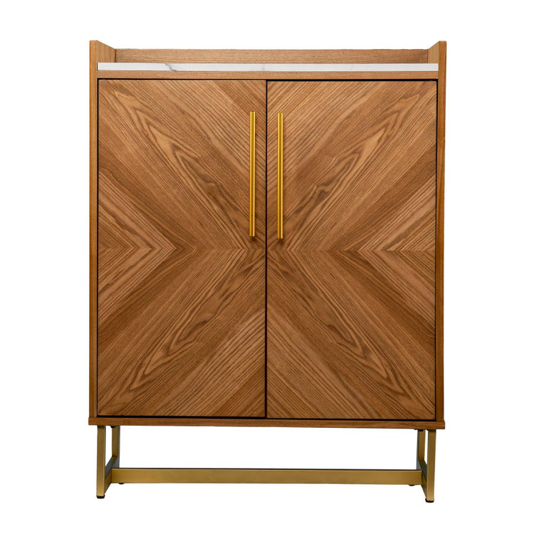 Add this midcentury modern bar cabinet to your dining area to keep wine, stemware and more nearby. The 4-shelf cabinet comes with 3 wine bottle holders and 6 glassware racks. The wooden cabinet features a luxurious faux marble top to become a talking point.