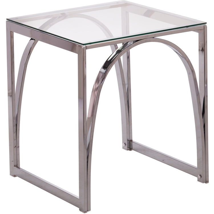 Accent your space with modern style thanks to the SEI Stevenly Square End Table. Its unique arched frame creates a contemporary look with plenty of stability. The elegant glass surface is ideal for displaying plants, photos and lamps.